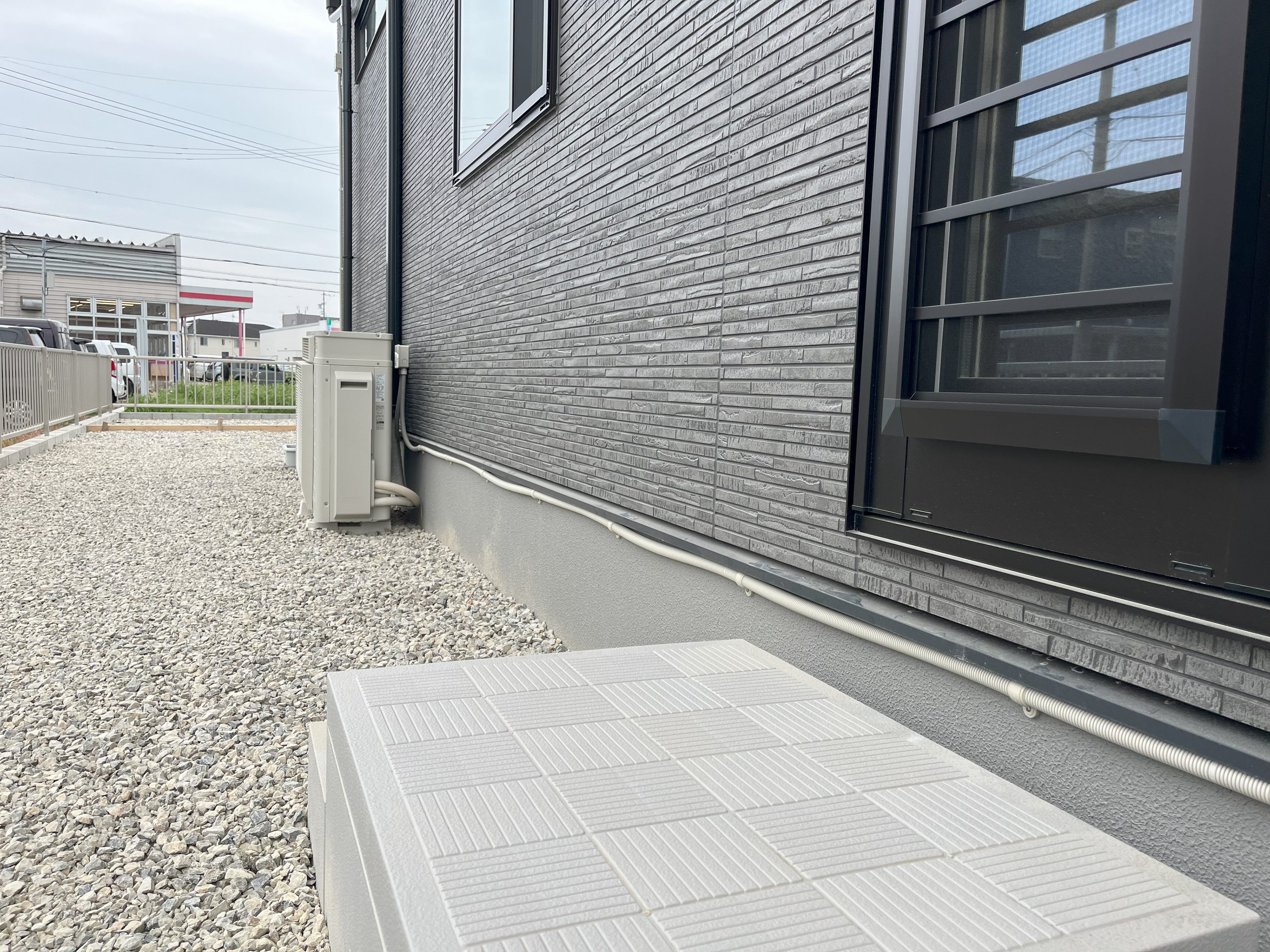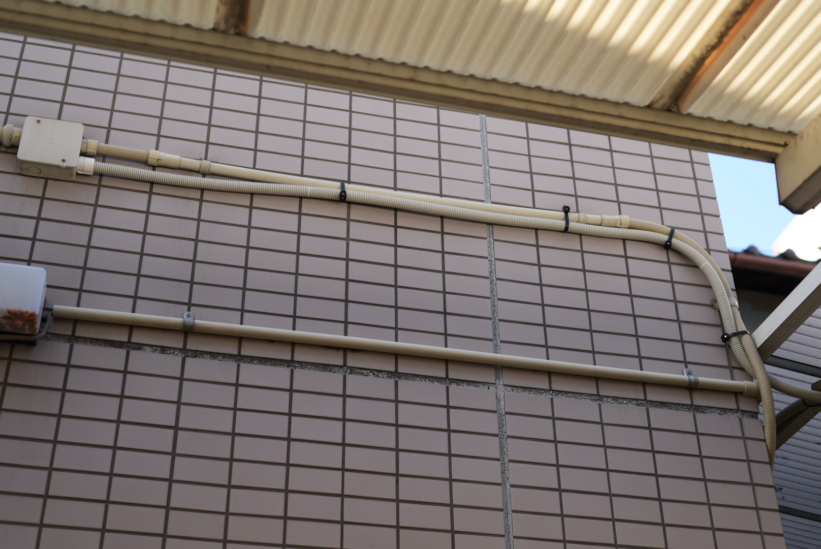 配管が、なるべく目立たないように基礎の根元を配線しています。